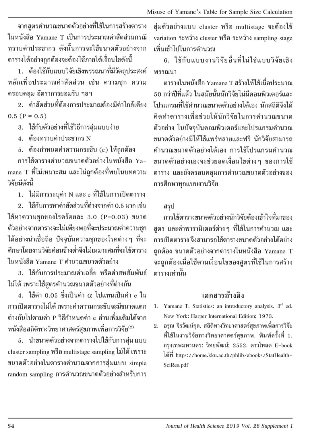 ใช้ Taro Yamane อย่างไม่ถูกต้อง โดย อรุณ จิรวัฒน์กุล